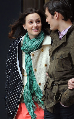 The "Roomate" star was busy filming “Gossip Girl,” sporting a cream colored coat and beige heels.